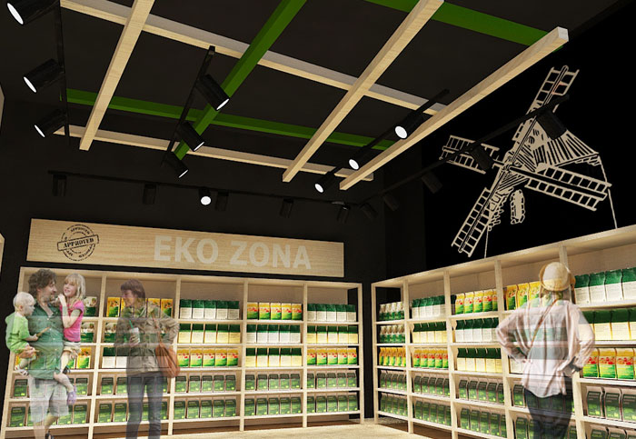 Izrada 3D modela i vizualizacija eko trgovine unutar prostora shopping centra prema zadanom projektu uređenja.